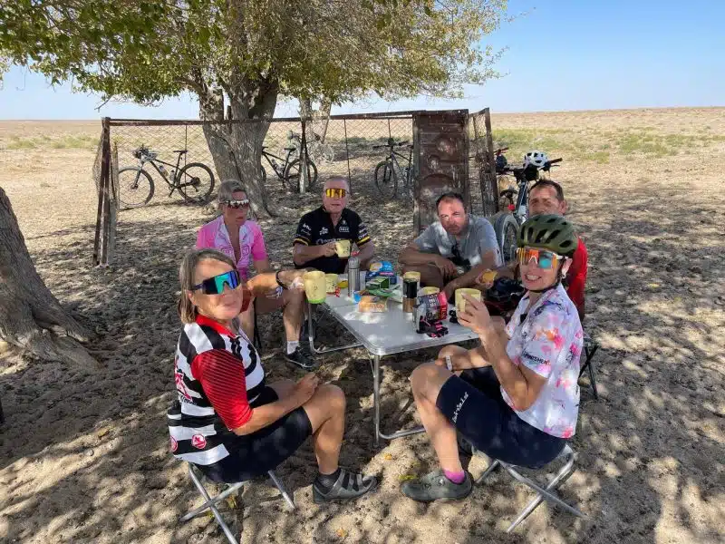 Le seul bémol, pour ce qui me concerne, c’était le repas de midi lors de la dernière étape. Ma remarque ne concerne pas la qualité du repas mais plutôt le cadre. En effet, nous étions habitués au style ouzbèque, (vaisselle colorée ambiance typique, hospitalité des familles qui nous accueillaient) et là, nous avons trouvé une ambiance plus froide