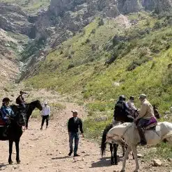 Chaque randonnée est accompagnée par un guide interprète Français/ Anglais/ Russe, ainsi que par un/des guides/palefreniers de montagne locaux. Tous nos circuits à cheval sont encadrés par un guide équestre local et un guide francophone aussi local. Le guide équestre, qui connaît les chevaux et le terrain par cœur, s’occupera de toute la logistique, comme l’itinéraire et l’organisation du portage des affaires avec les chevaux de bât. Le guide francophone encadre le groupe de cavaliers et il s’occupe également de la cuisine. Il sert également d’interprète pour les échanges avec les habitants locaux. Grâce à lui, vous pourrez apprendre sur l’histoire et la culture ouzbeke et comprendre l’origine de traditions avec lesquelles vous rentrerez en contact.