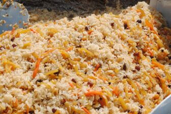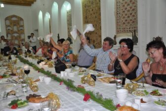 Ensuite, repas du soir chez l’habitant, aide à la préparation du pilaf, un plat traditionnel ouzbek : le plov est un plat à base de riz cuit avec des raisins, des pois chiches, des œufs de caille, des épices, des carottes jaunes et de viande. Accueil chaleureux des habitants.