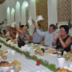 Dîner (inclus) dans la maison d’hôte, aide à la préparation du «pilaf», plat traditionnel, au dîner, chez l’habitant. Le «pilaf ou plov», plat à base de riz cuit avec des raisins, des pois chiches, des épices, des carottes jaunes et de la viande. Vous préparerez le dîner avec eux tout en apprenant à cuisiner des spécialités locales. Vous dégusterez ensuite en compagnie de la famille ce repas, servi sur le “dastourkhon” (nappe traditionnelle) qu’on partage avec les membres de famille dans la cour sous les ceps de vigne. Cette journée vous permettra de vous imprégner du mode de vie locale et de découvrir leur hospitalité.