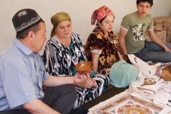Accueil à Samarcande puis transfert vers les premières collines de la vallée de Zarafshan. Installation chez l’habitant au village d’Omonkutan, découverte du village, des vergers et des cultures. Premier dîner et nuit en maison d’hôtes, en pension complète