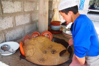Départ de Samarcande vers Urgut, connu pour son grand bazar et ses produits locaux, puis route vers les reliefs de la vallée de Zarafshan et des monts de Ghissar. Arrivée au village de Gilon, village de montagne isolé niché à flanc de versant, installation chez l’habitant, première découverte du village et de son mode de vie rural. Dîner et nuit en maison d’hôtes.