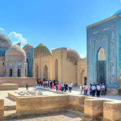 Petit-déjeuner. Départ pour Samarcande. En cours de route la visite du minaret de Vabkent datant du XII ème siècle et la Medersa d’Oulougbek XV ème siècle à Guijdouvan. En chemin, vous visiterez l’atelier du plus célèbre céramiste qui vous accueillera dans sa maison, à Guijdouvan. Visite de Sardoba (construction d’eau) et les ruines de karavanserai Raboti Malik du XIIème siècle. Arrivée à Samarcande. Installation à l’hôtel. Déjeuner. Début de la visite. Samarcande a conservé ses coupoles vernissées, ses murs aux couleurs vives et ses mausolées qui constituent autant de joyaux de l’architecture d’Asie Centrale. Découverte du Gour Emir, tombeau du Tamerlan. Dîner. Nuit à l’hôtel.