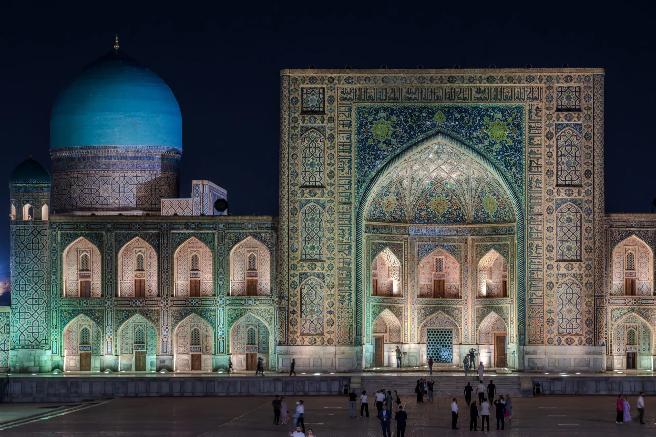 Départ matinal pour Samarcande, avec plusieurs arrêts possibles en traversant de charmants villages, offrant l’occasion de prendre des photos et de rencontrer les habitants. Arrêt possible au village de Khartang, un paisible lieu de pèlerinage, pour la découverte du mausolée de l’imam Ismaïl Al-Boukhari, l’un des plus grands noms de l’islam sunnite, notamment pour sa célèbre compilation de hadiths, le Sahih al-Boukhari. (Visite sous réserve de confirmation.)