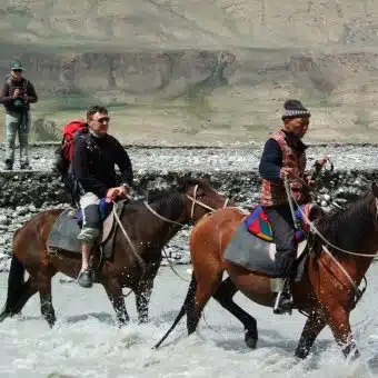 Petit-déjeuner. A 09h00, départ de la maison à cheval avec un accompagnateur. Arrêt pour pique-niquer derrière le col après 3h de trajet. Suite du trajet jusqu’à la Guest house de Sentob. Dîner et nuit chez l’habitant.
