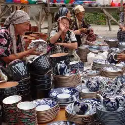 Route pour Kokand (40km). Vous avez la possibilité de voir le canal de Ferghana, un grand canal d’irrigation en Ouzbékistan. Construit en 1939-1940, c’était l’une des plus grandes structures hydrauliques de ex l’URSS. Arret a Richtan qui est connue par ses traditions des céramistes. Vous faites la découverte de la vie locale ouzbek dans le village de potier. Visite de l’atelier des céramistes. Dejeuner libre. A Kokand visiter le Palais de Khoudayar Khan, autrefois le plus grand d’Asie centrale. Le palais abrite un musée intéressant qui retrace le passé et le présent de Kokand et de la vallée de Ferghana. Vous visiterez également la mosquée Jomi avec ses ateliers d’artisanat et Dakhmai Jahon – « les Tombes des Gouverneurs ».