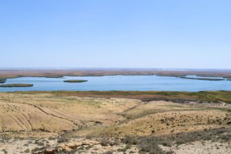 Déjeuner pique-nique au bord du lac. Anciennement d’eau douce, le lac est devenu de moins en moins profond, et de plus en plus salé. Les gens ont abandonné les villages voisins, le poisson est devenu moins abondant, bien que des apports en eau remplissent parfois le lac et empêchent la disparition complète des poissons et des oiseaux migrateurs. Quelques anciens phares faits de briques de boue et disséminés le long des anciennes rives étaient utilisés pour aider les pêcheurs à retrouver leur chemin. Il est possible de voir une colonie russe et polonaise abandonnée de l’ère stalinienne, les ruines d’un hôpital, de maisons et d’une ancienne usine de poisson. Aujourd’hui, une maison de pêcheurs est encore debout, les vestiges tristes de l’ancienne gloire.