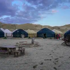Ce séjour en Ouzbékistan commence à Nukus et met rapidement le cap vers le nord-ouest, là où la mer d’Aral a laissé place à un désert de sel, de sable et de falaises entaillées. En 4×4, la piste vous mène sur le plateau d’Ustyurt, le lac Sudochi et l’ancien fond marin, ponctué de phares abandonnés, de villages déserts et de nécropoles, témoins d’un passé de pêche florissant. En fin de journée, le camp de yourtes sur les berges actuelles de la mer offre un cadre unique pour admirer le coucher de soleil, dîner autour du feu et, si les conditions le permettent, se baigner dans une eau très salée, avant une nuit au calme sous les étoiles.